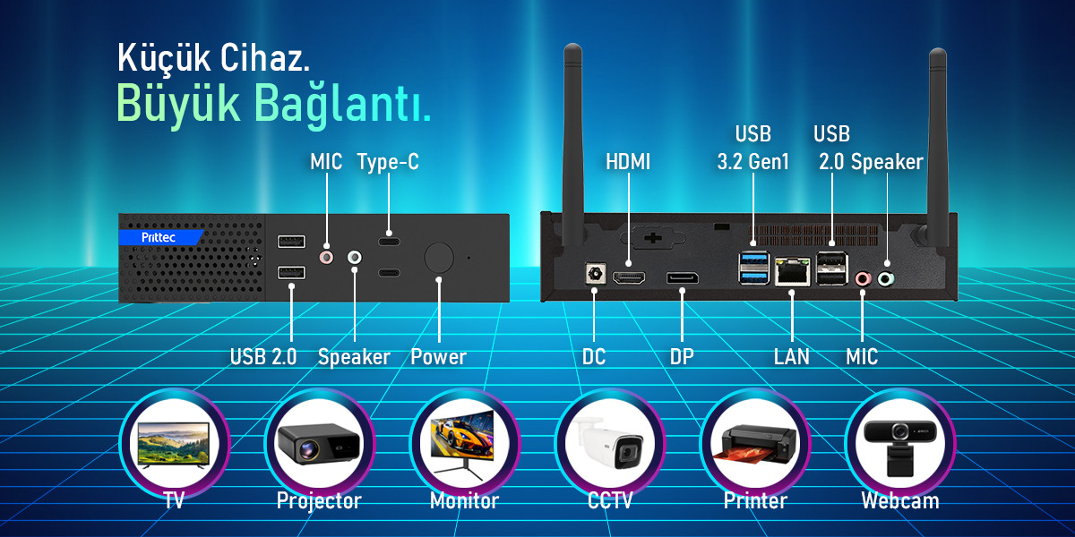 MINI PC Q7, yüksek performansı kompakt tasarımıyla bir araya getirir—modern ve alan tasarruflu kurulumlar için mükemmel bir çözümdür.