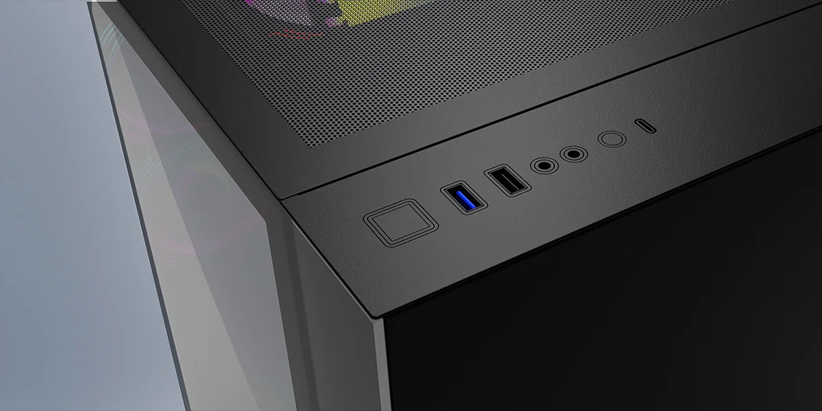 Üst panelindeki bağlantı noktalarıyla, güncel harici cihazların kablolu arabirimlerine kolayca bağlanabilirsiniz. 1 adet USB 3.0 ve 1 adet USB 2.0 portu sayesinde depolama cihazlarınızı bağlayabilir ve kulaklık ile mikrofon girişlerine kolayca erişebilirsiniz. (Type-C Dahil Değildir)