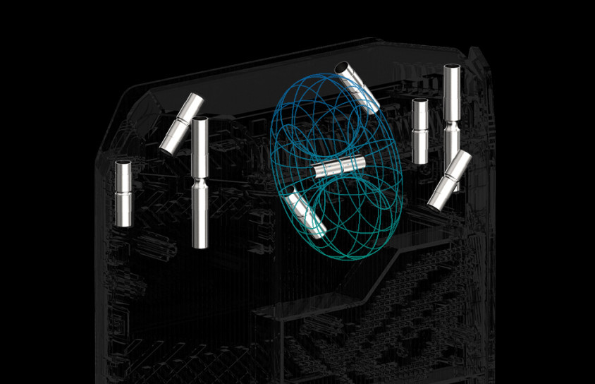 Isı performans düşüşlerine sebep olabilir. Router’ın altında ve üstünde bulunan ızgaralar soğutma bloğuyla harika şekilde hizalanarak en iyi taşınım etkisi ve ısı dağıtımı oluşturuyor. Yanlardaki hava açıklıkları ise klasik eğik çizgili bir düzen ortaya koyuyor.