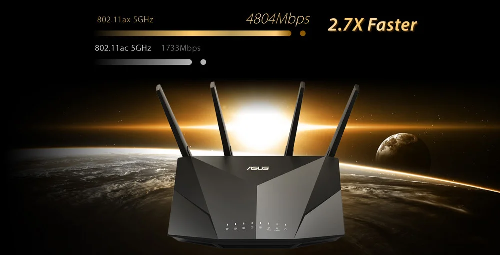 AX5400 Dual Band WiFi 6 (802.11ax) Genişletilebilir Router, Dahili VPN, AiProtection Pro Ağ Güvenliği, Ebeveyn Kontrolleri, Instant Guard, AiMesh Uyumlu- Yüksek verimliliğe sahip WiFi 6 – Ultra hızlı WiFi 6 router daha fazla cihazla baş edebilmek için artırılmış kapasiteyle 5,400 Mbps’e varan hızlar sunar.