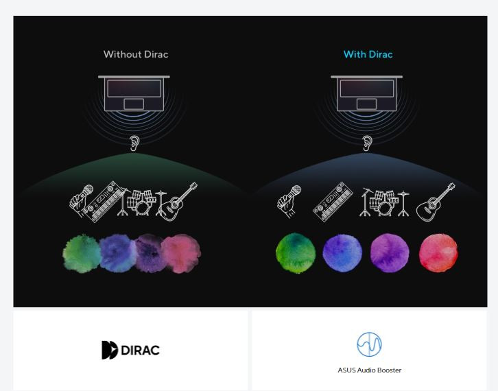 Profesyonel bir ses çözümü sağlayıcısı olan Dirac'ın ses uzmanlarının yardımıyla tasarlanan ses sistemi, şimdiye kadar bir PC, dizüstü bilgisayar veya tablette duyduğunuz en sürükleyici, net ve dengeli ses deneyimini sunar. Hayal edebileceğinizden daha geniş ve derin bir ses ortamı duyacak ve dizüstü bilgisayarınızın tüm ses potansiyelini ortaya çıkaracaksınız.
