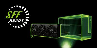 Bu SFF-Ready Enthusiast GeForce kartıyla daha küçük bir alana yüksek performans sığdırabilirsiniz. PC yapınızı kesin bir şekilde oturtmak ve kolaylaştırmak için SFF-Ready Enthusiast GeForce Kartlarıyla uyumlu kasalar arayın.