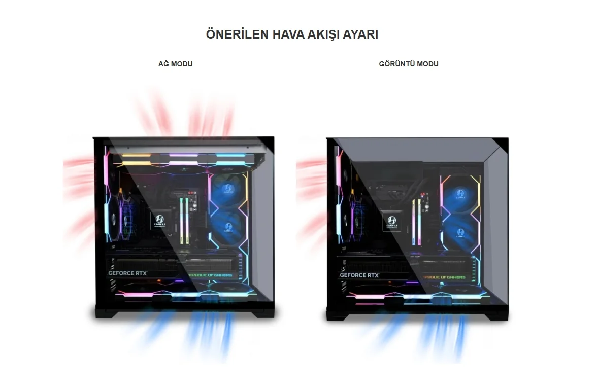 Fan Desteği Üst: 120mm x 3 veya 140mm x 2 - Yan: 120mm x 3 - Alt: 120mm x 3 - Arka: 120mm x 2